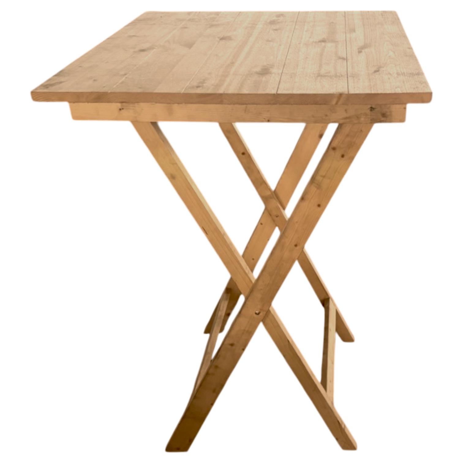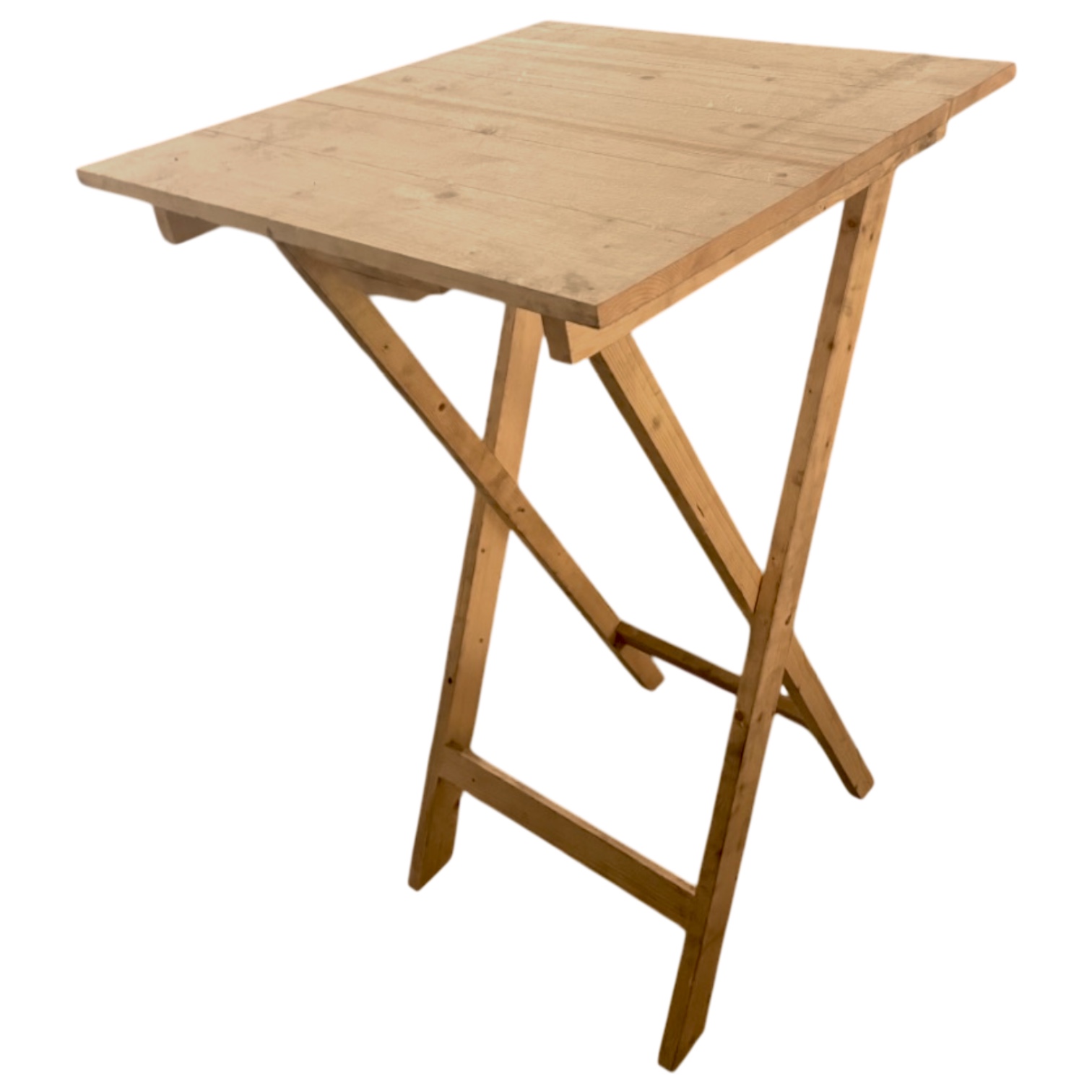 Fabriqué en pin, le mange-debout pliant en bois carré apportera une touche champêtre à tous vos évènements.